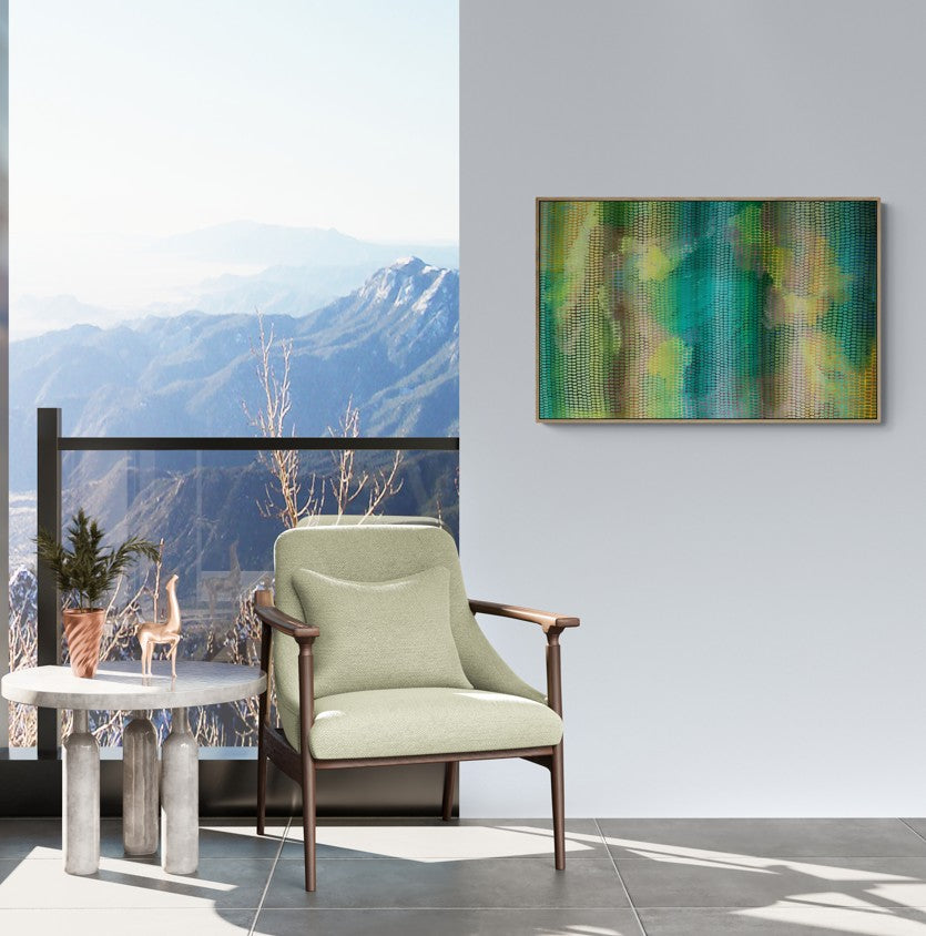 The story behind the original work - This work is inspired by my surroundings and nature, This work is in acrylic, this work is part of my series of mark making works, an abstract background, full of beautiful mark making using impressionists techniques, an ethereal work, the final layer creates a veneer or a veil. My hope is that the viewer is drawn in and finds their own narrative.