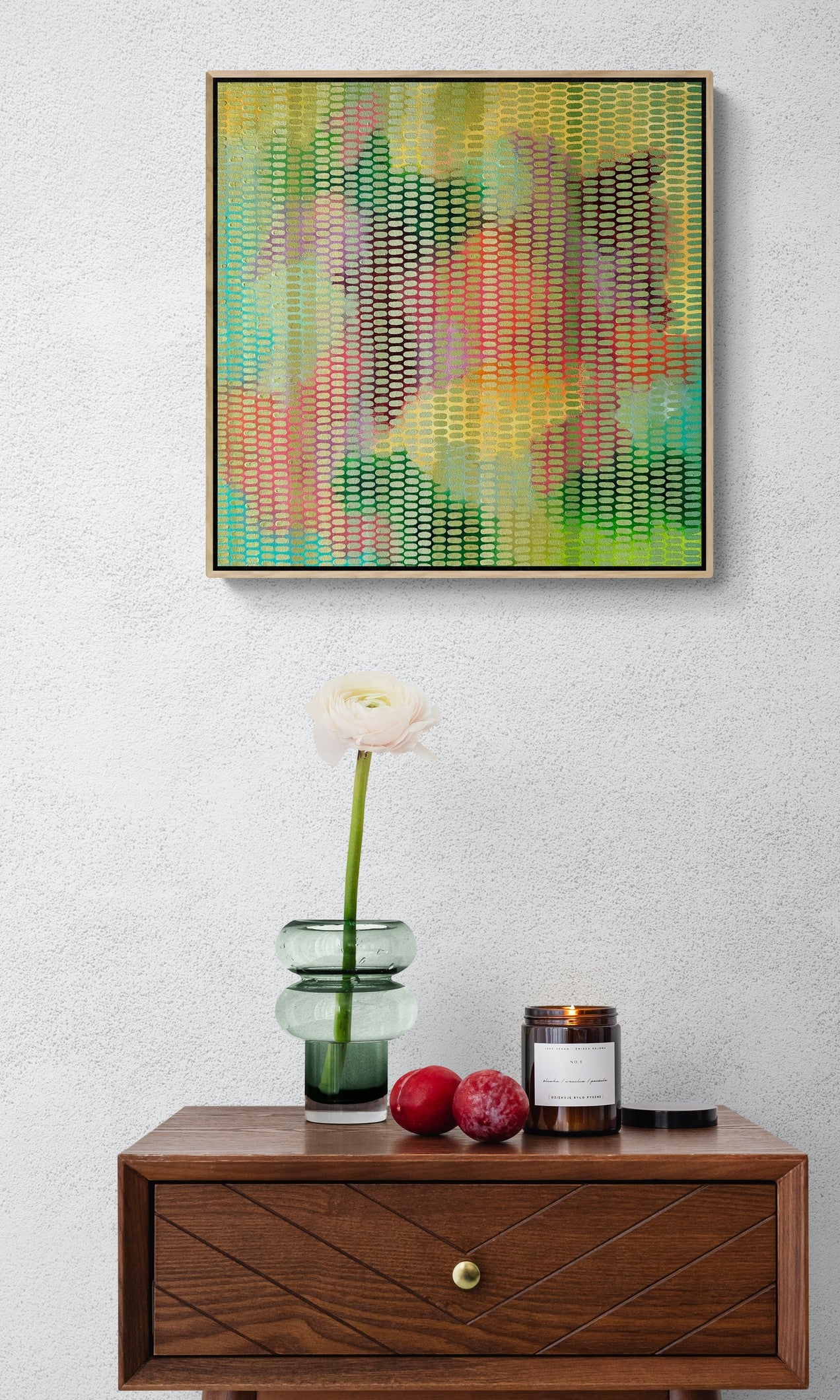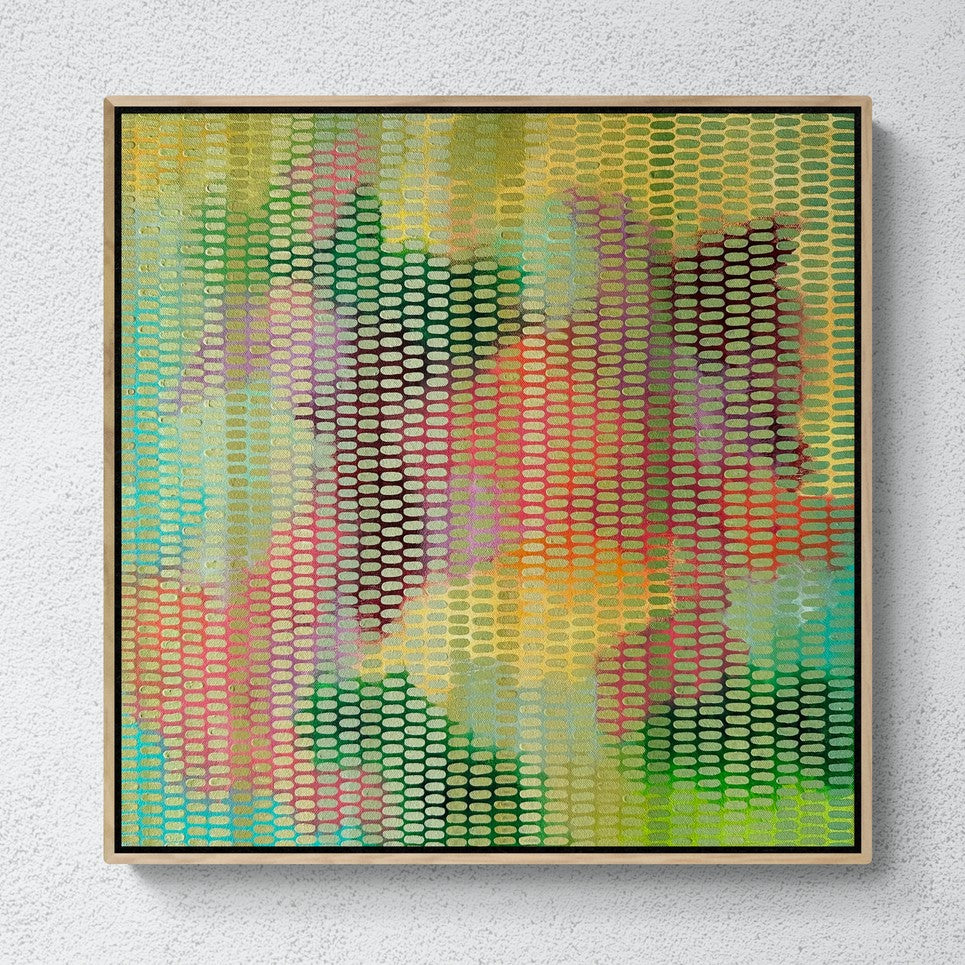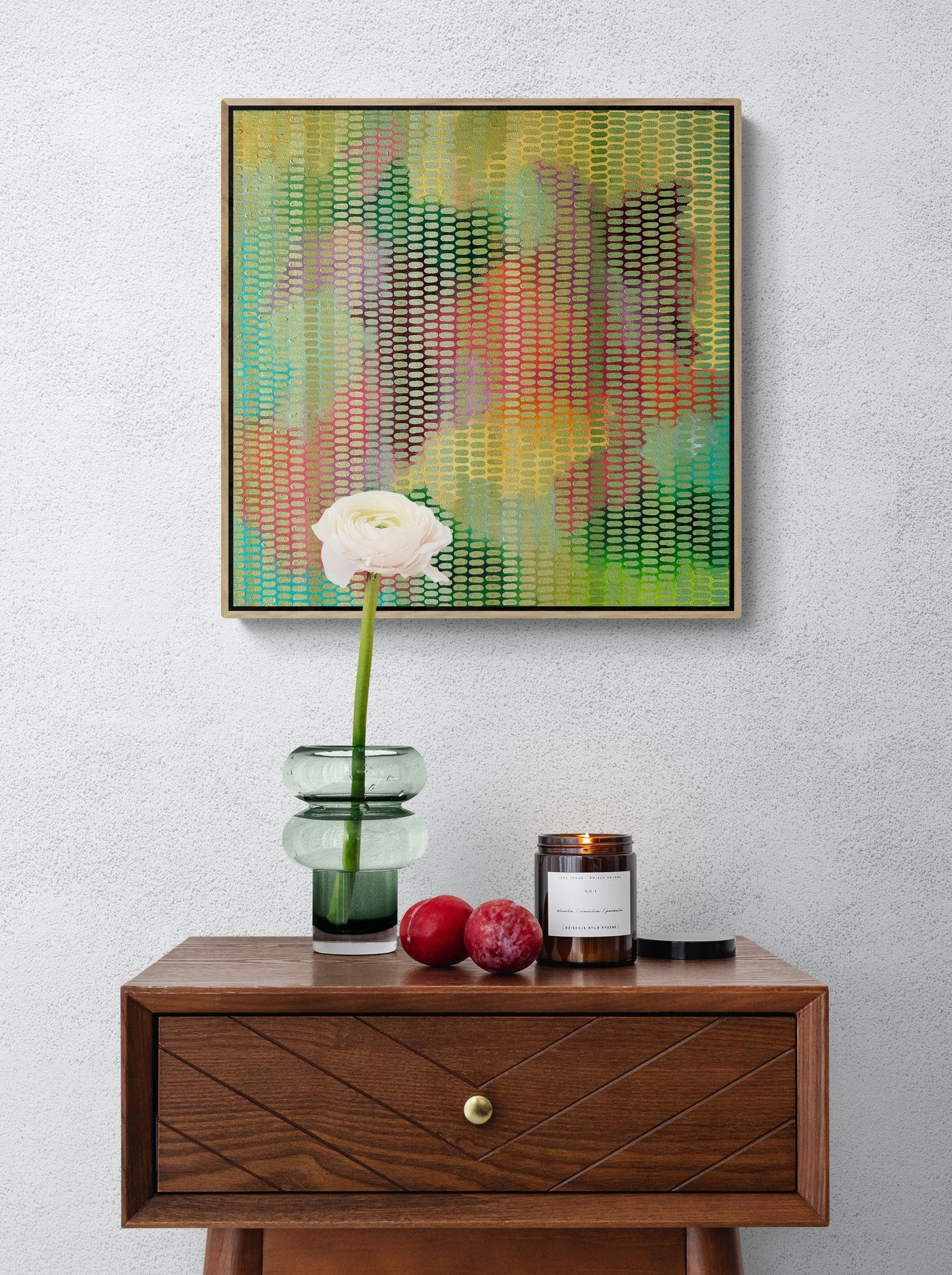 Olive moonlight original framed in oak floating frame - 46.5cm x 46.5cm A rich and vibrant abstract work.