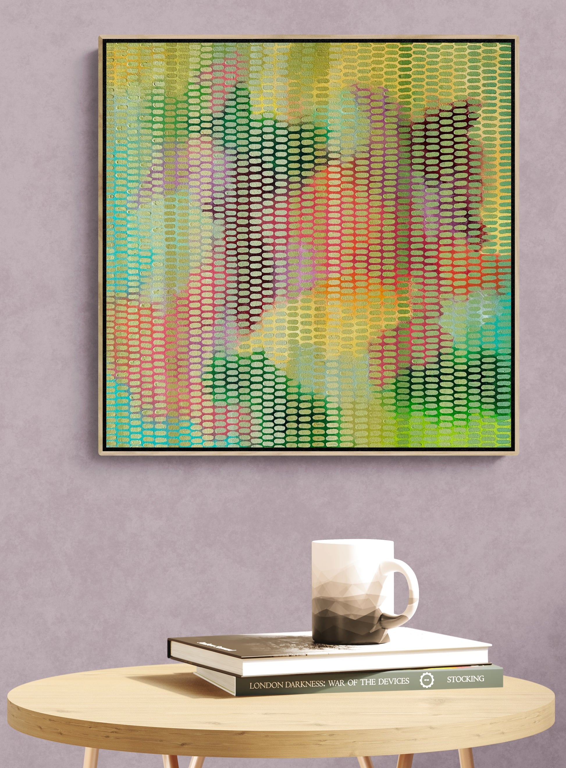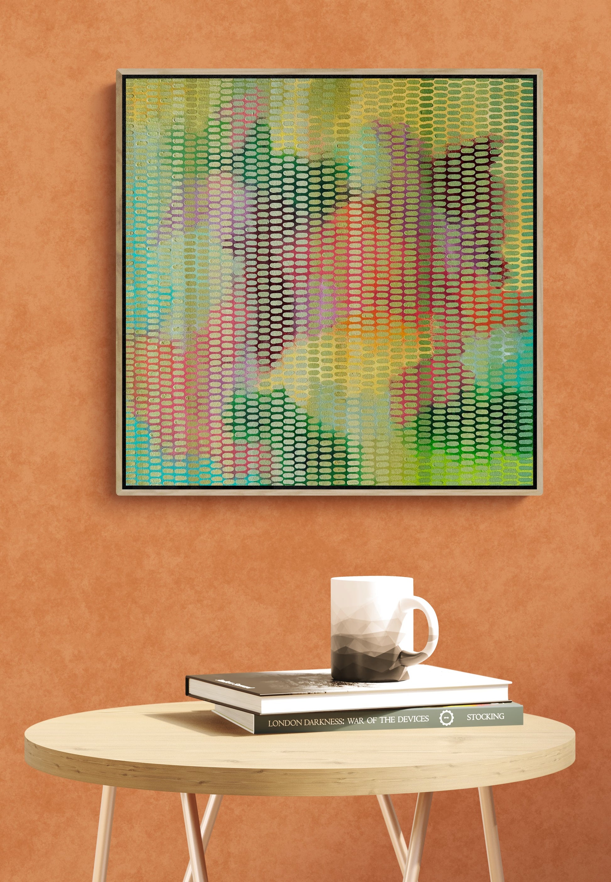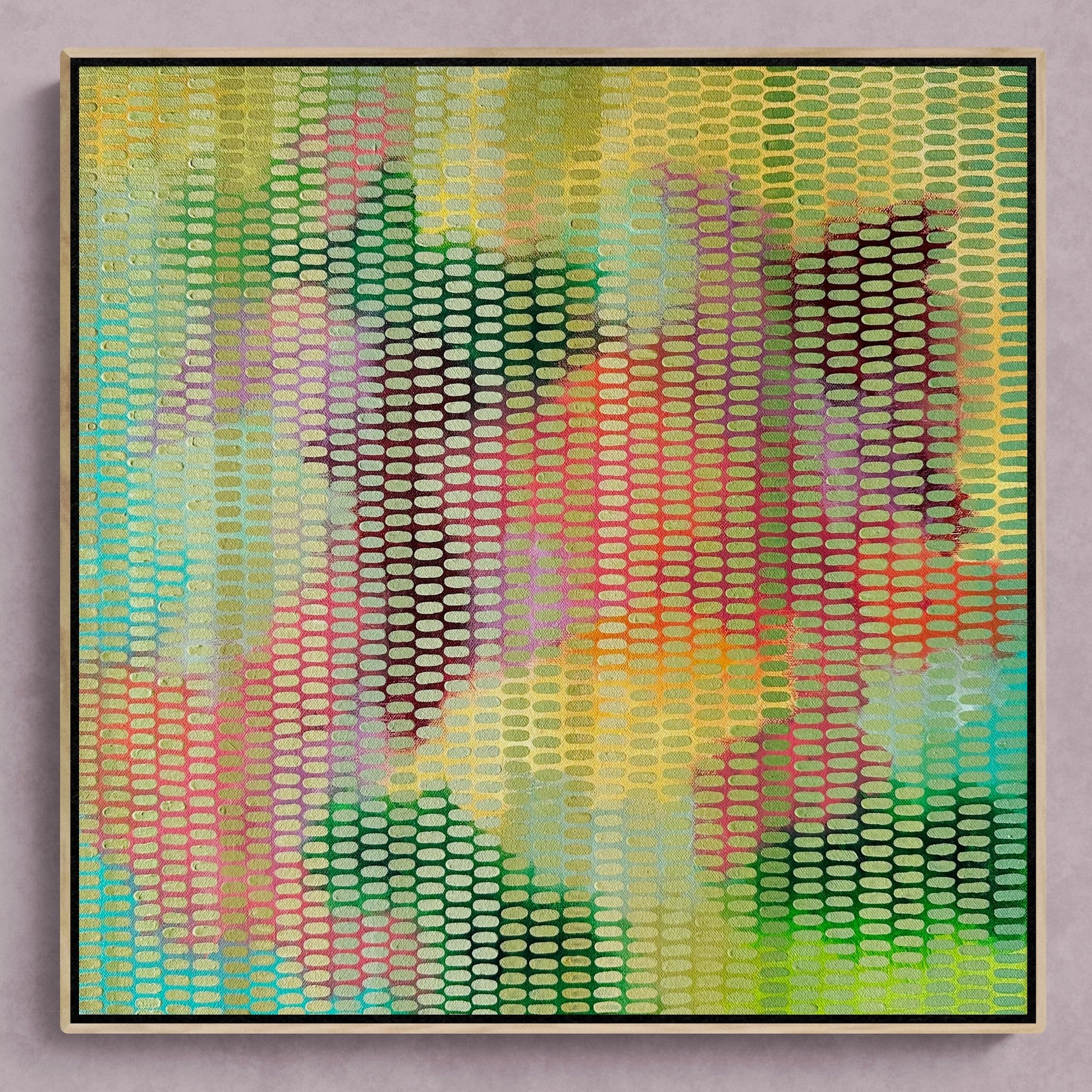 Olive moonlight original framed in oak floating frame - 46.5cm x 46.5cm A rich and vibrant abstract work.